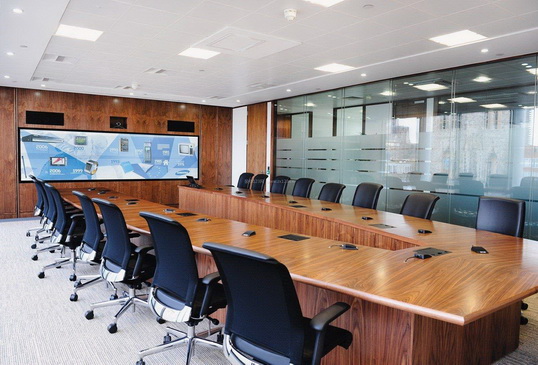 多功能會議室的音響效果需滿足國家廳堂擴聲系統(tǒng)設(shè)計的聲學特性指標標準。在建筑聲學配合的基礎(chǔ)上,一般還需要通過使用擴聲設(shè)備進行音效補償,主要實現(xiàn)音頻信號的還原、放大。 多媒體顯示系統(tǒng) 多媒體視頻系統(tǒng)主要包括投影系統(tǒng),輔助液晶顯示系統(tǒng),實物展示系統(tǒng),智能電子白板等,以滿足現(xiàn)代化信息交流的需要。通過它可以把電視、DVD、電腦、攝像球、錄象機、遠程會議圖象等視頻信號進行還原和展示。