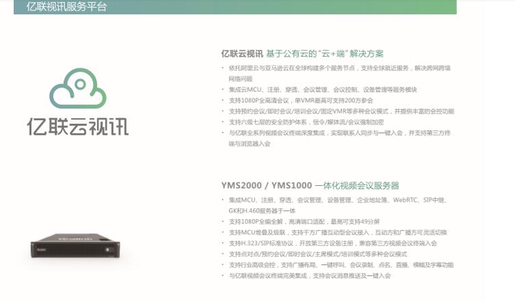 方案概述 過去幾年,企業(yè)信息化建設(shè)處于高速發(fā)展,大型企業(yè)機(jī)構(gòu)為滿足分布全國各地的分支機(jī)構(gòu)溝通需求,提升溝通效率、縮減商務(wù)出行成本,多已陸續(xù)建立視頻會(huì)議系統(tǒng);但早期視頻會(huì)議系統(tǒng)通常以專用硬件設(shè)備的形式構(gòu)成,包括多點(diǎn)控制單元MCU和視頻終端,并且彼此之間要用專網(wǎng)進(jìn)行連接。硬件及專網(wǎng)的高額成本,設(shè)備部署復(fù)雜,接入方式單一,制約了企業(yè)內(nèi)外部實(shí)時(shí)信息交流、協(xié)同工作的發(fā)展。 而云視頻會(huì)議解決方案,通過在公有云上部署媒體服務(wù)器(MCU)、會(huì)控管理平臺SMC、公私網(wǎng)穿越服務(wù)器等云化產(chǎn)品,實(shí)現(xiàn)會(huì)議控制服務(wù)端的軟件化、資源池化,接入線路全面化、接入終端類型多樣化,可隨時(shí)隨地召開會(huì)議,可彈性伸縮滿足會(huì)議高低峰需求,節(jié)約成本。 云視頻會(huì)議優(yōu)點(diǎn)